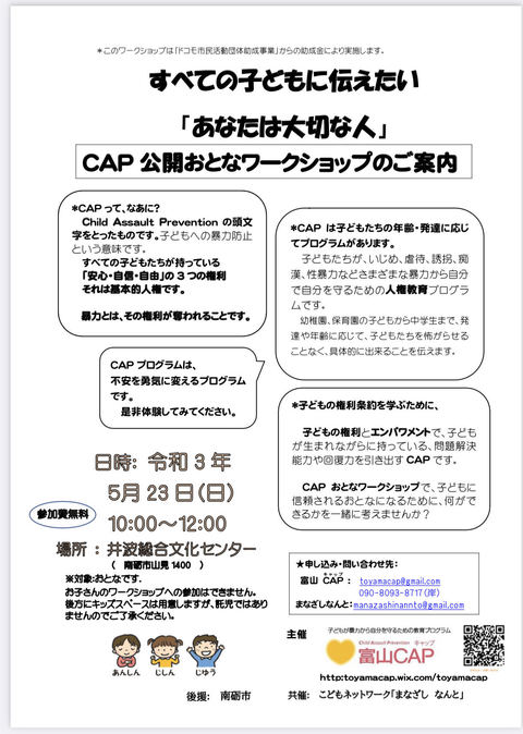 子ども達と向き合うヒントを富山CAPのワークショップを通して学ぶことができます。