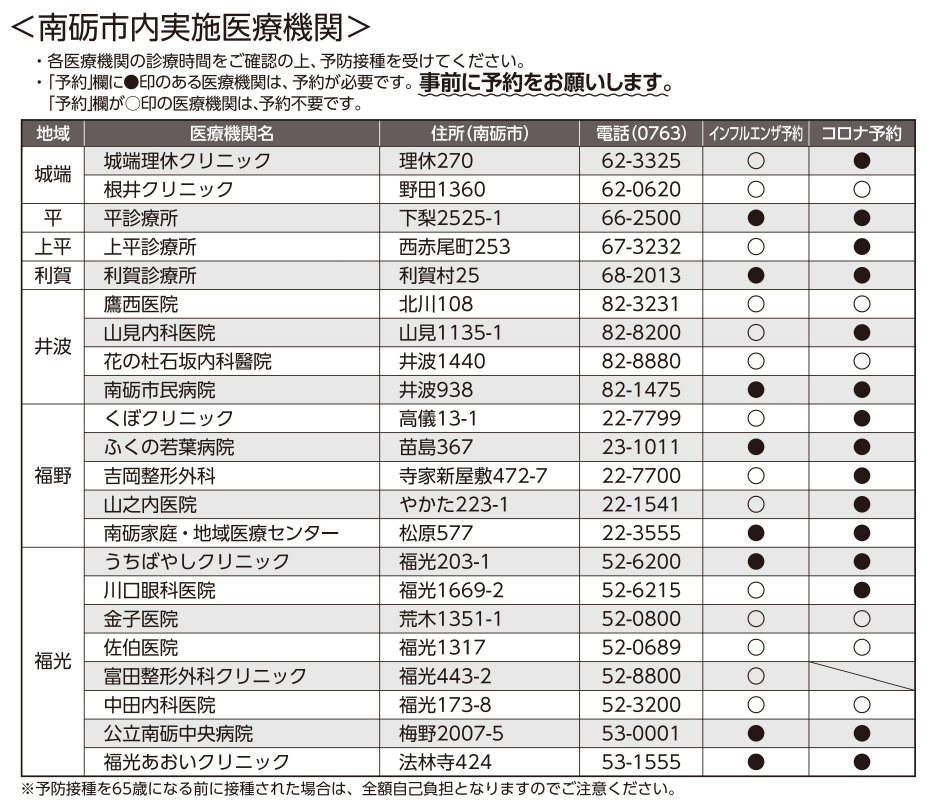 (注意)予約が必要な医療機関があります。直接医療機関へ予約をお願いします。