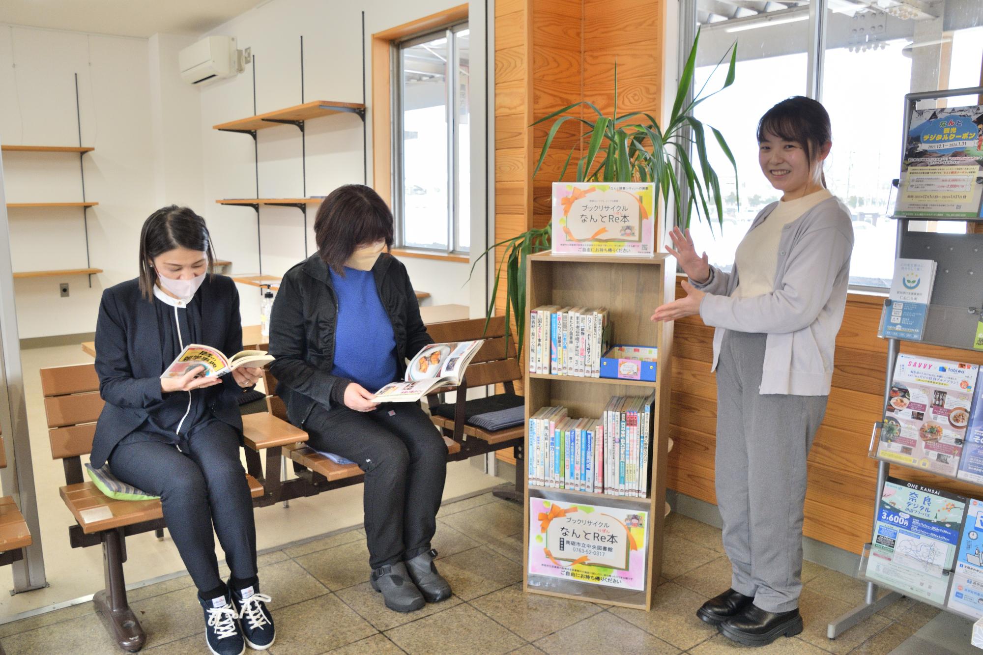 市立図書館で、利用頻度の低下などから蔵書リストから外した「除籍本」を活用し、駅やスーパーの待合室で、本を読んだり、持ち帰ったりできる取り組み「なんとRe本(リボン)」を開始しました。